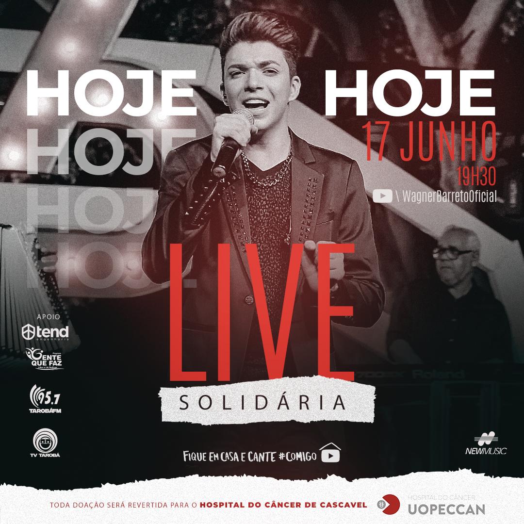 Wagner Barreto anunciou a sua segunda live, que será realizada nesta quarta-feira (17), e será transmitida pela Tarobá FM 95.7 para toda região de Cascavel/PR, com apoio da rádio e também da TV Tarobá com apoio da TEND Engenharia, que faz realiza obras por toda cidade e região. As doações serão destinadas ao Hospital do Câncer Uopeccan, que fica localizado nas cidades de Cascavel e Umuarama.